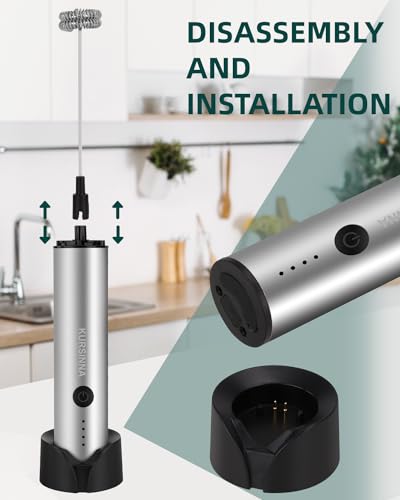 [Upgraded] KURSINNA Powerful Rechargeable Milk Frother Handheld with 3 Speed, USB-Charge Hand Frother with 2 Stainless Whisks, Coffee Frother for Frappe, Latte, Matcha (3 Speed USB Charge)