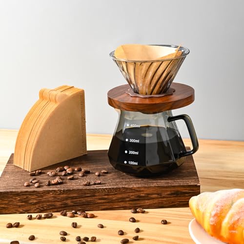 Pour Over Coffee Maker With Paper Filter 40 Sheets,Gray 13.5 Oz Pour Over Coffee Dripper Set Borosilicate Glass Coffee Carafe,For Home,Camping, Hiking
