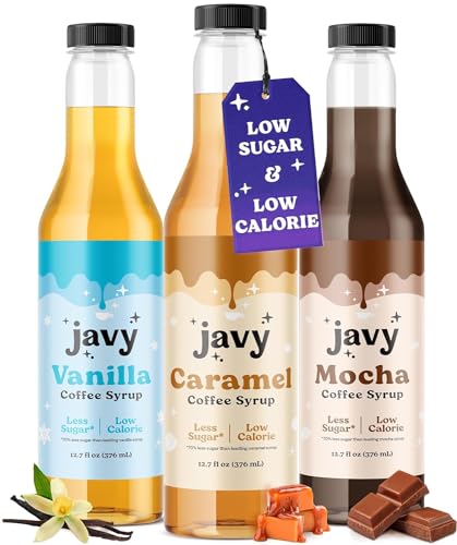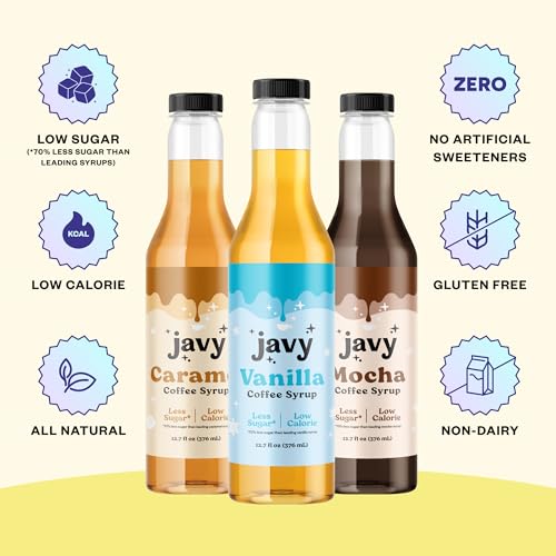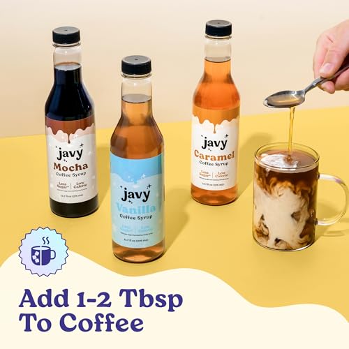 Javy Premium Coffee Syrup, Low Sugar – Low Calorie, Coffee Flavoring Syrup, Coffee Bar Accessories. Great for Flavoring All Types of Drinks